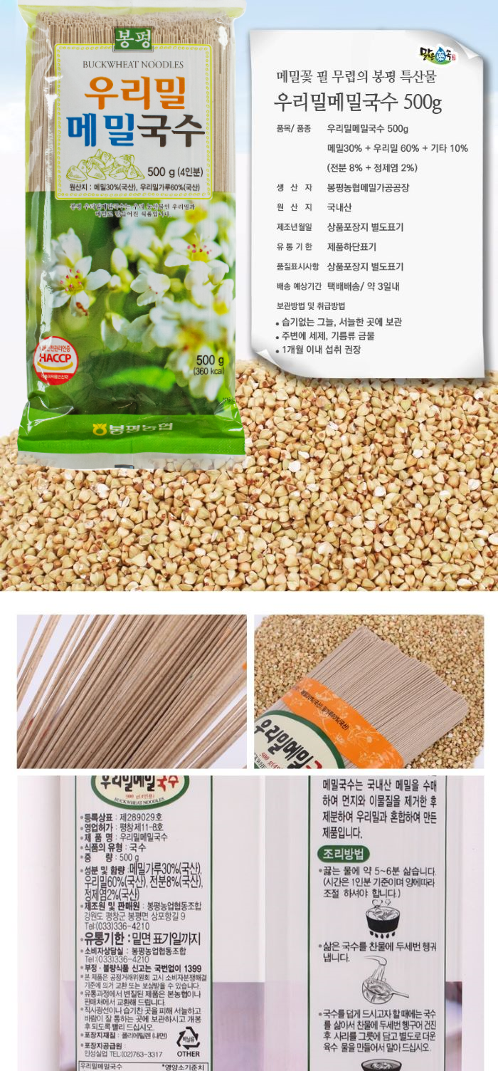 저희 봉평농협메밀가공공장에서 생산한 ' 우리밀메밀국수500g ' 제품에 100당 영양성분 표시가 누락되어 혼동을 드린 점 사과드립니다.